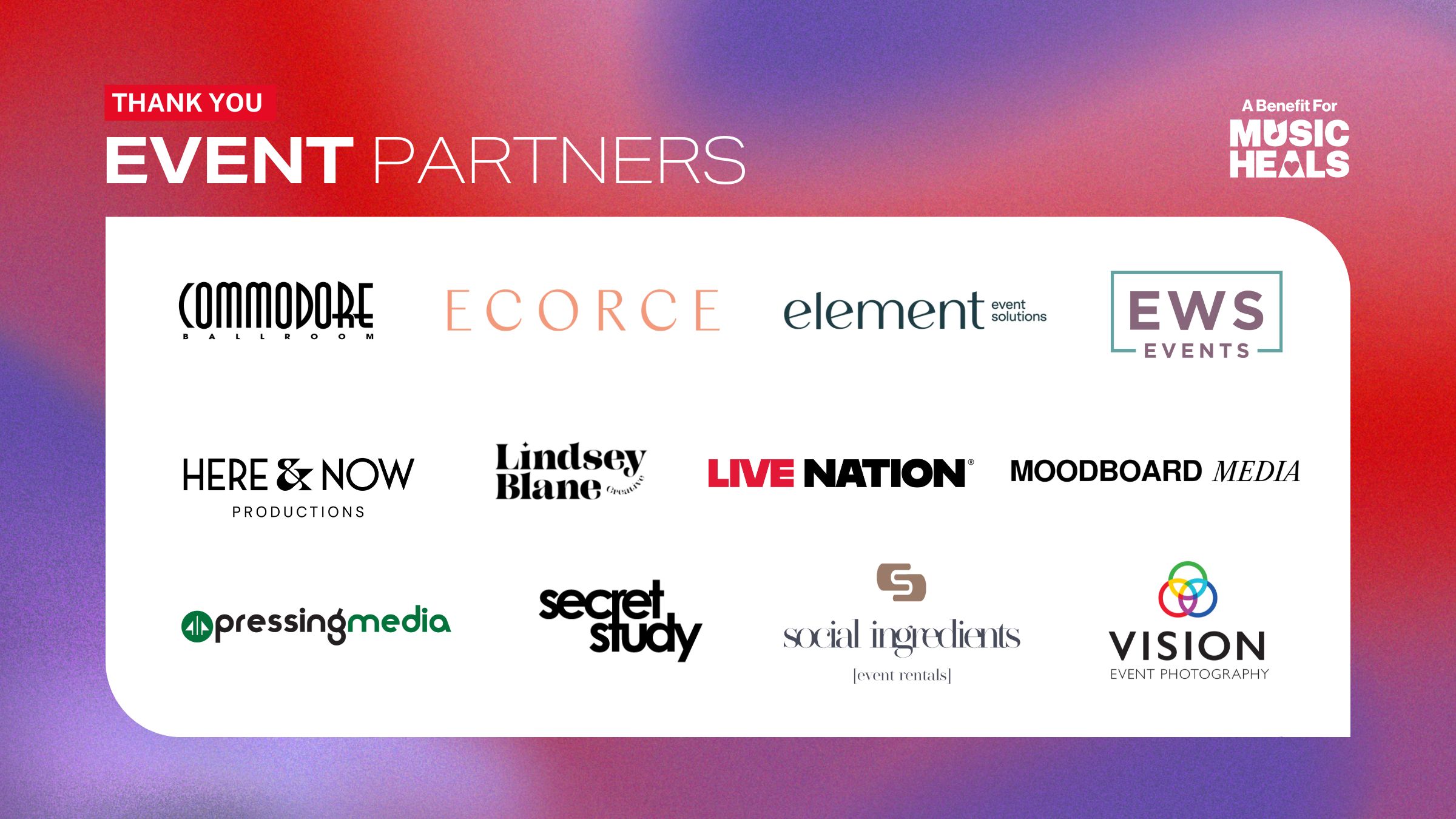 This event would also not be possible without our incredible Event Partners helping us to create a spectacular evening of music and celebration. To all of you, we extend a massive thank you!